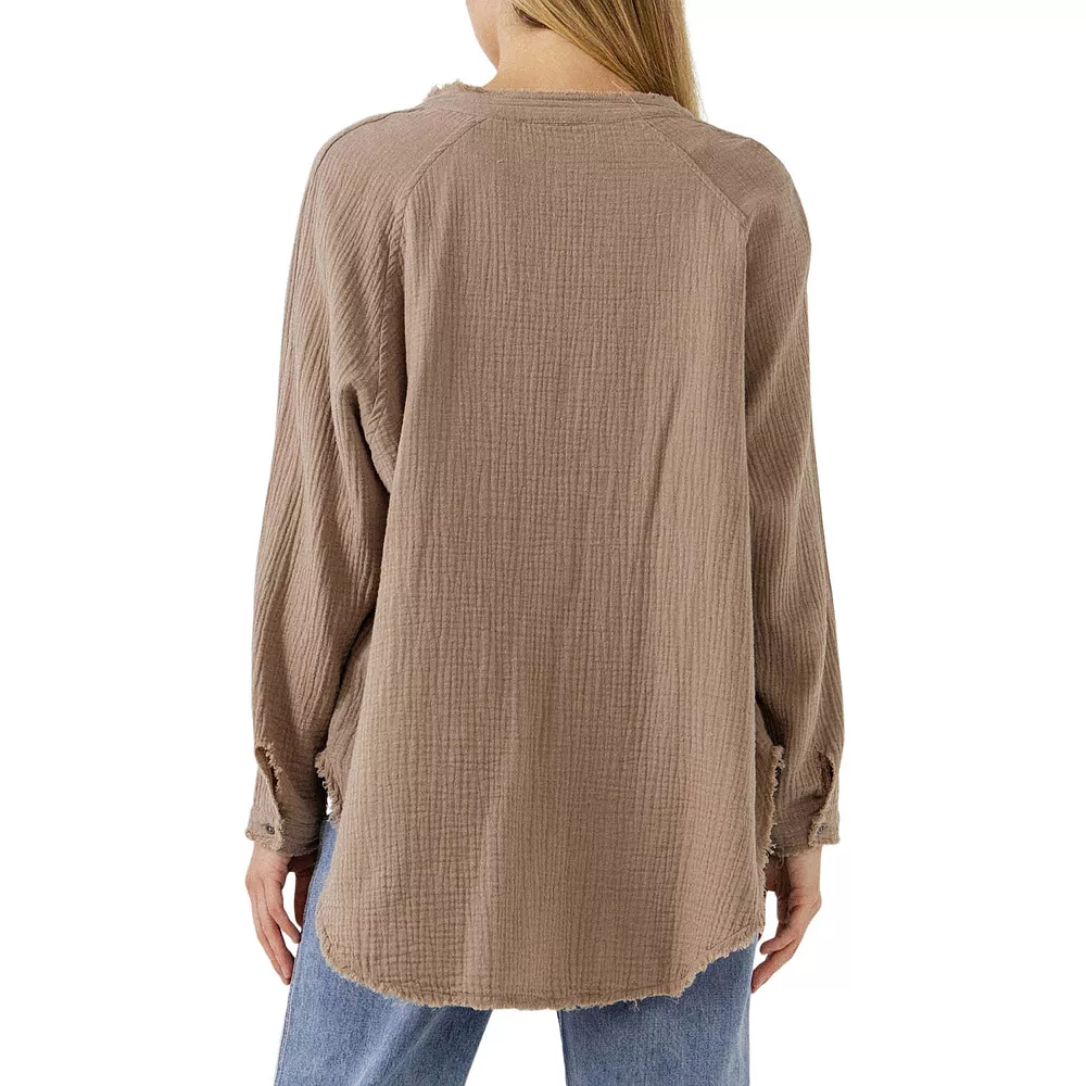 Update your wardrobe with this Button Down Tunic. This tunic is made of soft cotton gauze fabric, which makes it breathable and perfect for warmer weather. Pair it with denim jeans or skirts for a casual look. With its relaxed fit, this tunic can be worn in multiple ways. Layer it over a tank top or wear it alone. This versatile piece will become your go-to in your wardrobe.