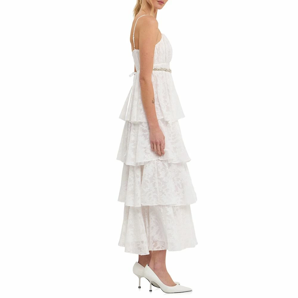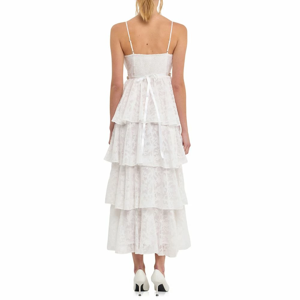 Add a touch of elegance to your look with this stunning maxi dress. Boasting a beautiful floral jacquard fabric this maxi dress is perfect for all occasions. The ruched bust and tiered lower bodice create a figure-flattering silhouette while the side zipper allows for easy on and off. With its graceful style this maxi dress is sure to make you feel like a goddess. Make it the centerpiece of your wardrobe and wear it again and again.