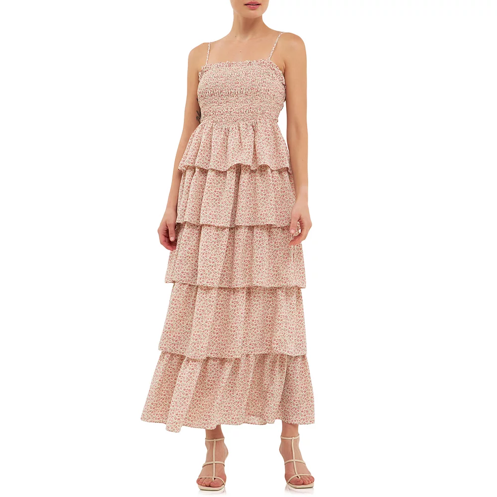 Feel like a goddess in this floral print maxi dress. The smocked bodice provides a fitted and flattering look while the adjustable spaghetti ties give you the perfect fit. The multi tiered skirt flows beautifully as you move and the lining ensures that you’re always comfortable. With a sleeveless design you can enjoy the warm weather while looking your best.