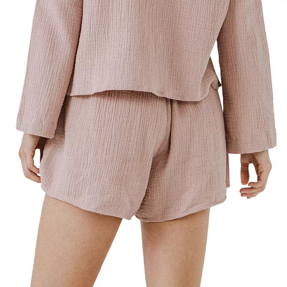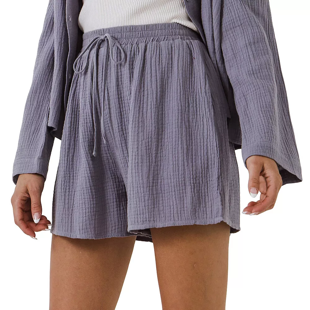 These comfy gauze shorts from Free The Roses are made from cotton gauze fabric and are perfect for any season. They have a drawstring waistband for a relaxed fit and convenient pockets. Dress them up with our matching top!