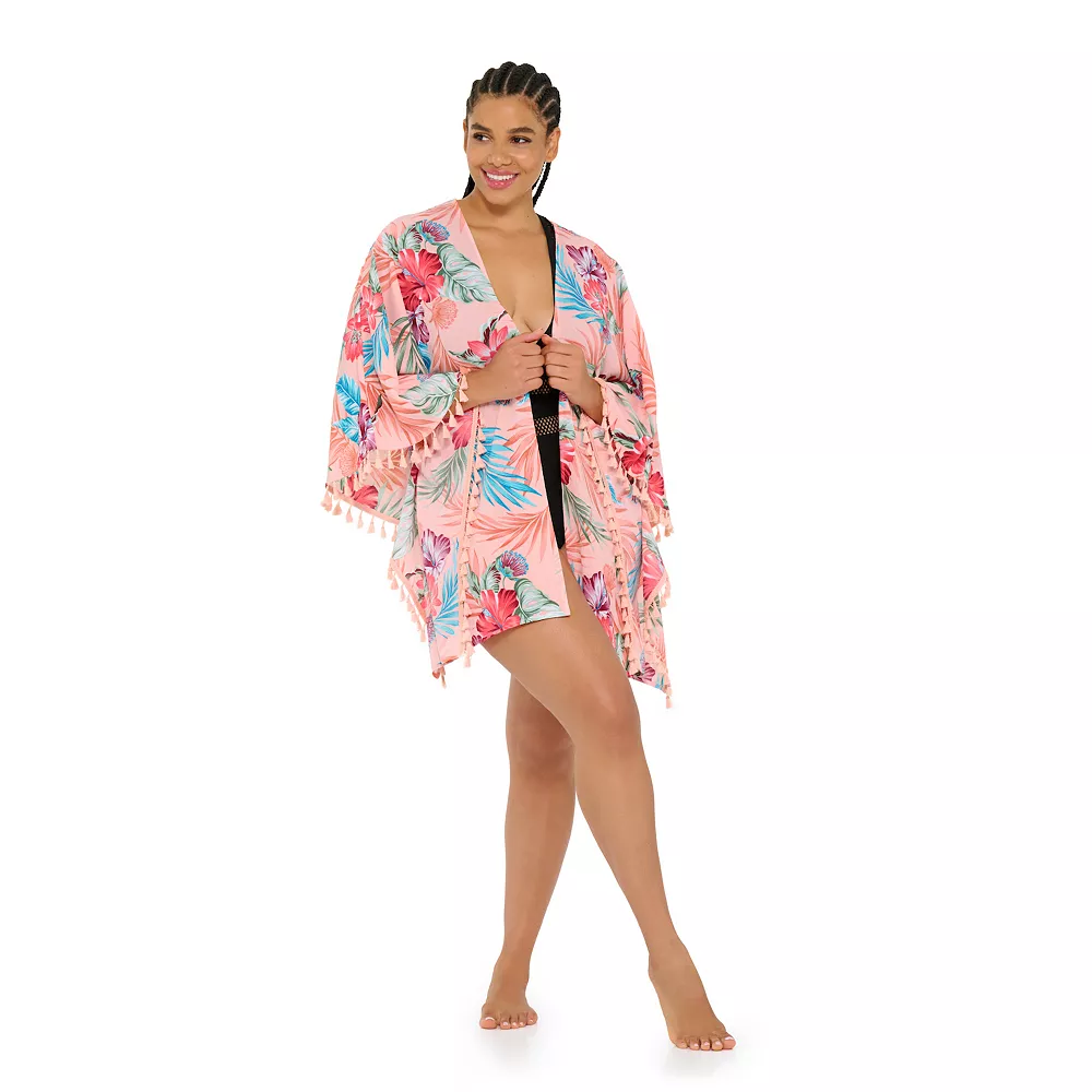 Fabulous fringe details make this women’s plus size swim cover-up sarong the perfect choice for poolside lounging.