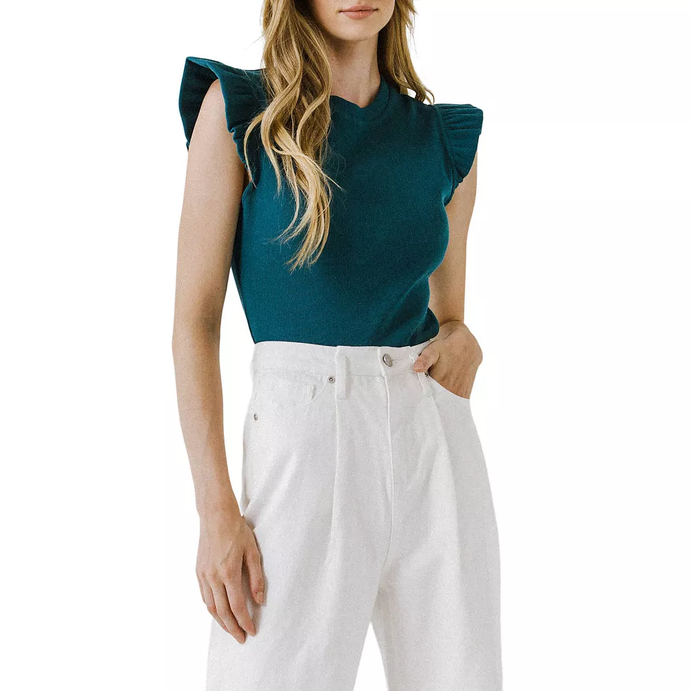 Elevate your outfit with the Ruffle Detail Knit Top! This top features beautiful ruffle details, a round neckline, and is fitted. Truly the perfect top to pair with your jeans, shorts, or a cute skirt!