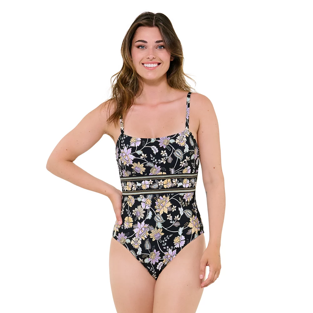 Soak up the sun by the pool or at the beach in this women’s floral one-piece swimsuit by Freshwater.