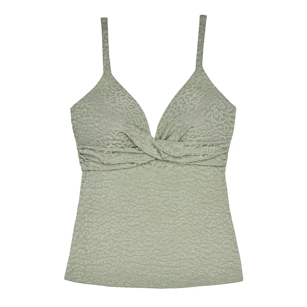 Splish and splash in style when you choose this women’s front-wrap tankini top by Freshwater.