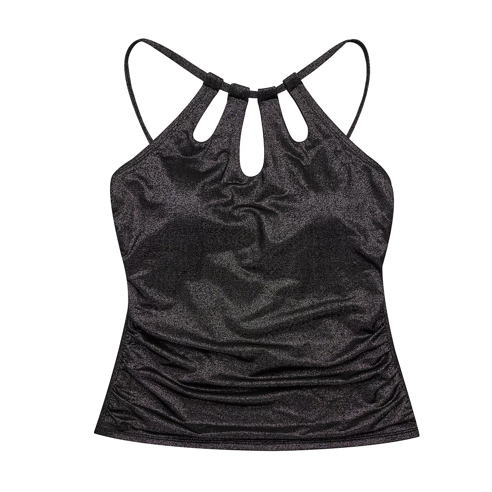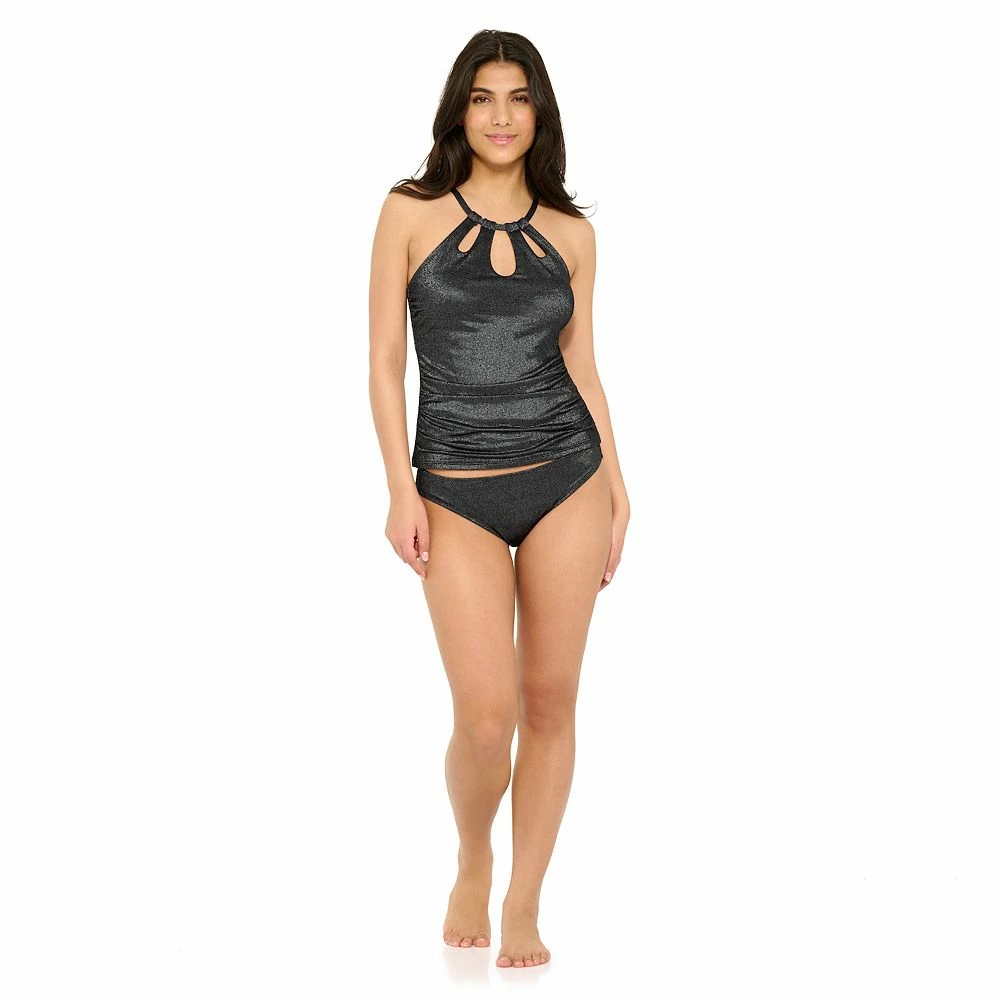 Cutout details and a high neckline give this women’s Freshwater tankini top head-turning style.