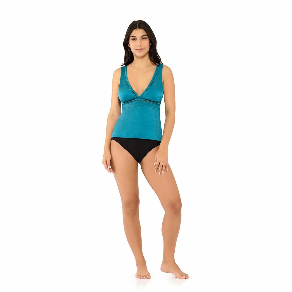 Hit the beach or pool in style wearing this women’s Freshwater ladder-trim tankini top.