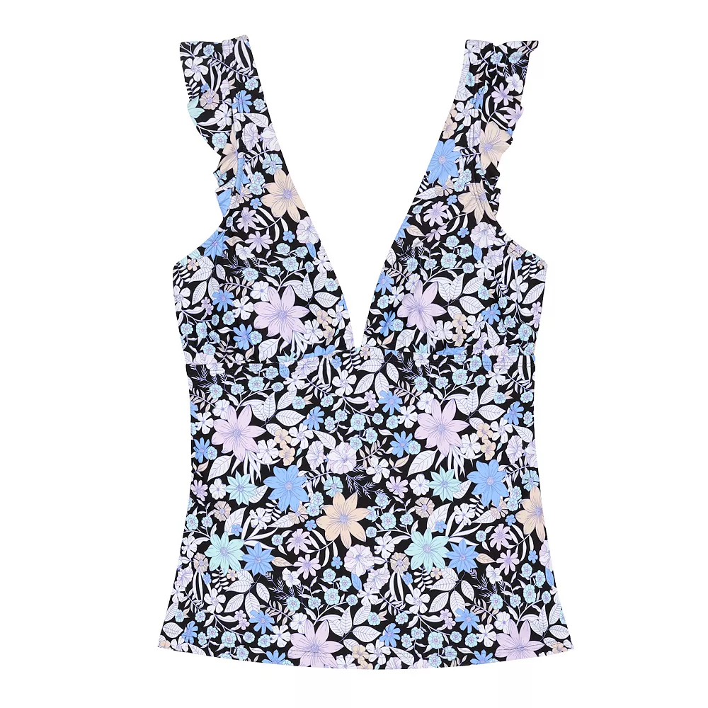 Whether you’re soaking in the rays or just chilling in the shade, this women’s ruffled strap tankini top from Freshwater has your back.